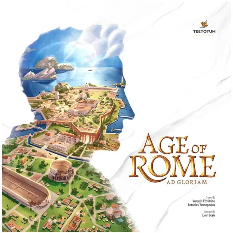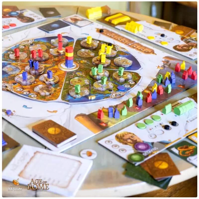 Dans Age of Rome, chaque joueur se voit attribuer un héros sur son plateau de jeu respectif, puis reçoit des quêtes secrètes et des ressources de départ (deniers, partisans, jetons de stratagème, légions et votes). Ils passent ensuite neuf tours à s’affronter sur un plateau tournant pour gagner des points de gloire.