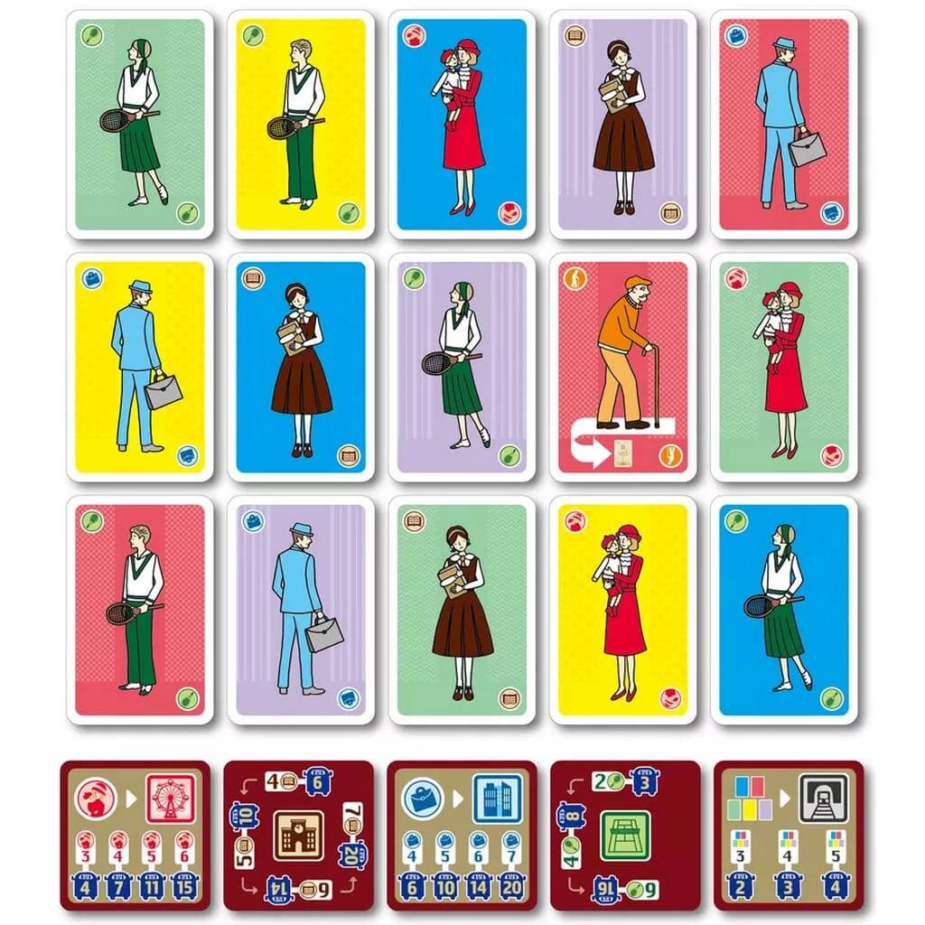 Pour déposer des passagers, choisissez un groupe de cartes dans votre bus qui correspond à l’une des cartes de destination disponibles puis retirez ces passagers de votre bus et placez-les sous la carte destination correspondante. Vous marquez des points pour chaque carte en fonction du nombre de personnes que vous avez débarquées en même temps. Chaque fois qu’un joueur réalise cette action, tous les autres joueurs peuvent copier cette dernière en débarquant 1 passager de leur bus et en le plaçant dans une pile personnelle avec les personnes âgées.