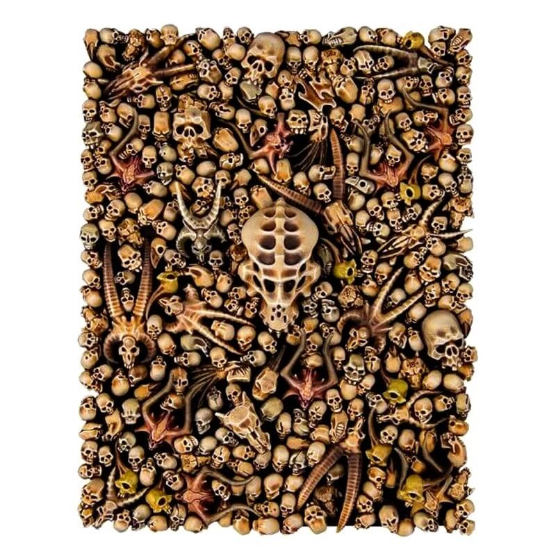 Cette boîte propose 340 crânes en plastique, faits pour que les hobbyistes agrémentent leurs décors, socles et figurines à leur guise. Il y a même 20 mandibules en prime !