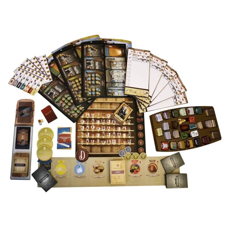 Obtenez le titre de Maître Distillateur en ayant le plus de points de victoire à la fin du jeu. Les points sont obtenus en distillant et en vendant des spiritueux.