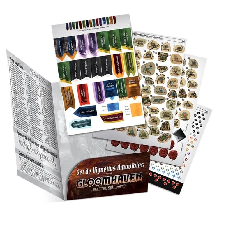 Un ensemble d’autocollants vinyle amovibles compatibles avec la première et la deuxième impression de Gloomhaven.