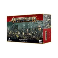 Ce kit de 20 figurines vous permet de monter une unité de Shootas, les principaux tireurs de l’armée des Gloomspite Gitz que vous trouverez excellents pour tenir les objectifs, user l’ennemi sous les volées de traits et nuire de toutes les façons possibles. Il permet également d’assembler des Stabbas, qui forment le gros des effectifs de nombreuses armées de Gloomspite Gitz, ce qui leur confère la capacité à submerger l’ennemi sous le nombre. Ils sont très utiles pour capturer les objectifs ou écranter les éléments fragiles de votre armée. D’autant qu’on peut y dissimuler des Loonsmasha Fanatics…