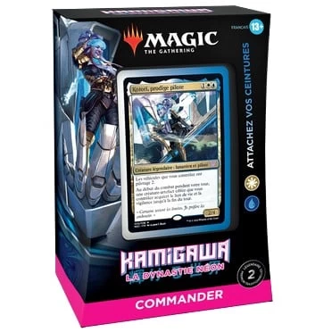 Decks commander prêts à jouer dès la sortie de la boite. Les cartes sont issues de l’extension Magic the Gathering: Kamigawa : Dynastie Néon.