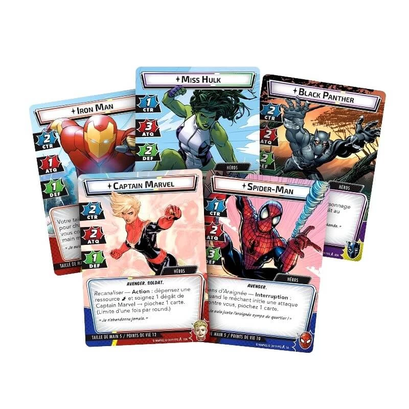 Avec plus de 350 cartes, 100 pions et plein d’autre matériel, la boîte de base de Marvel Champions JCE vous offre tout ce dont vous avez besoin pour entamer votre aventure dans cet univers sous les traits d’Iron Man, Captain Marvel, Spider-Man, Black Panther ou Miss Hulk.