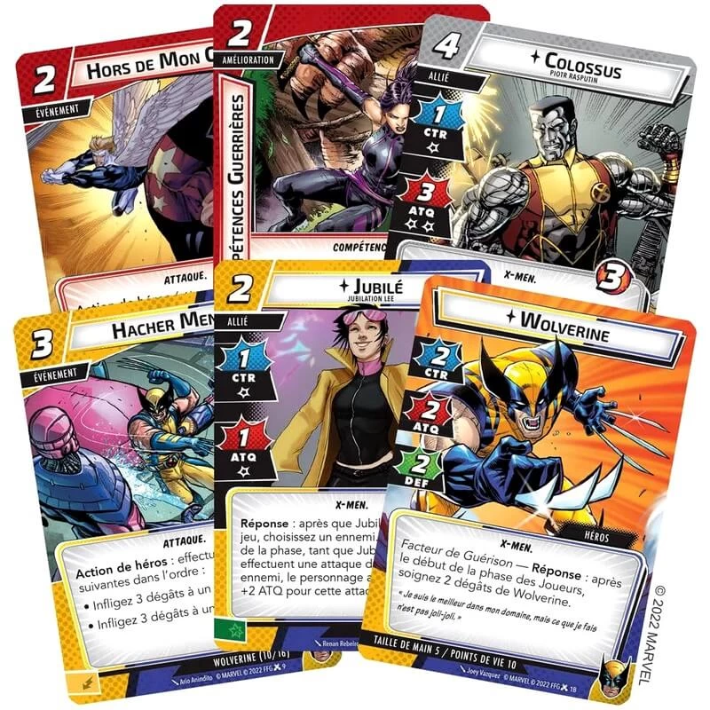 Pour les joueurs désireux de défier Magneto et sa Confrérie des Mutants, ils peuvent commencer avec le Pack Héros Wolverine ! Cette extension est livrée avec un deck préconstruit de 40 cartes, permettant aux joueurs de commencer à jouer dès la sortie de la boîte.