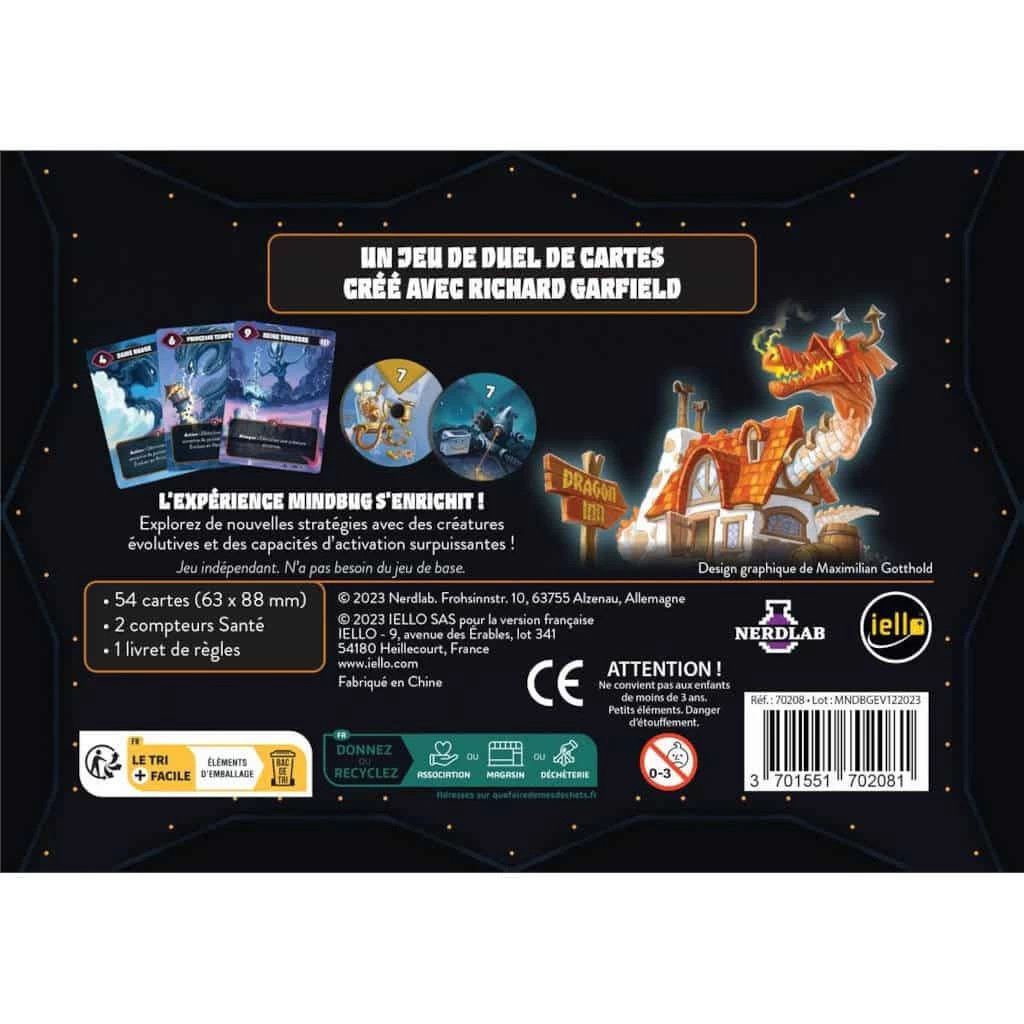 Cette extension autonome, Mindbug introduit l’effet Évolution sur certaines cartes, permettant de jouer à travers une ligne d’évolution en 3 étapes avec des capacités de créature changeantes.