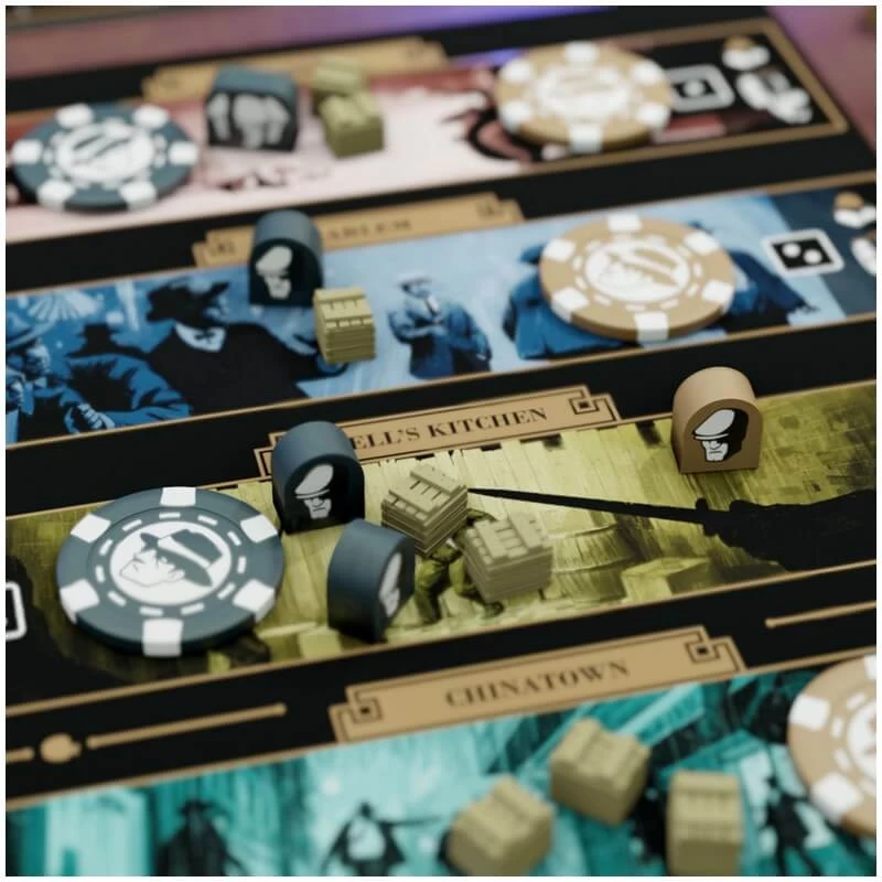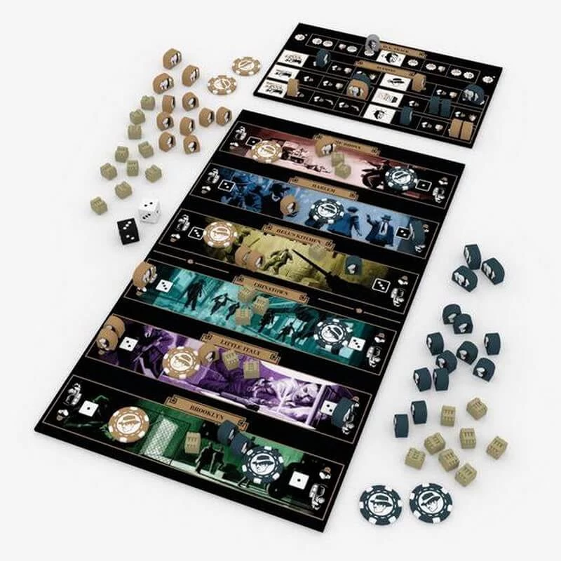 MOB : Big Apple est un jeu passionnant exclusivement pour deux joueurs et qui se joue en moins d’une heure. Un mélange subtil de placement de dés vous permettra d’envoyer vos hommes de mains sur les différents quartiers mais le dilemme sera constant car un dé indiquera le quartier accessible et l’autre le nombre d’hommes de main que vous pourrez embarquer dans votre voiture.
