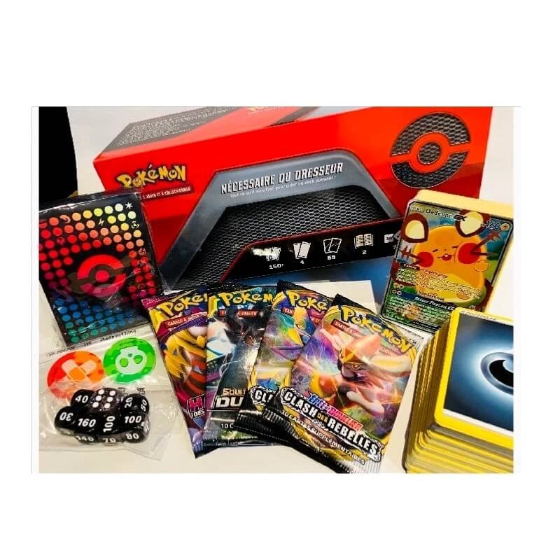 Après tout, les joueurs du JCC Pokémon doivent prendre toutes sortes de décisions quand ils construisent un deck. Davantage de gros Pokémon ? Davantage de cartes Dresseur stratégiques ? Peut-on vraiment avoir trop d’Énergies ? Le Nécessaire du Dresseur du JCC Pokémon peut vous aider ! Vous obtiendrez même certains accessoires à utiliser quand vous jouez, comme des protège-cartes, des dés et des marqueurs d’États Spéciaux. Créez des decks vraiment uniques avec des combos originaux et amusez-vous à défier d’autres Dresseurs avec le Nécessaire du Dresseur du JCC Pokémon.