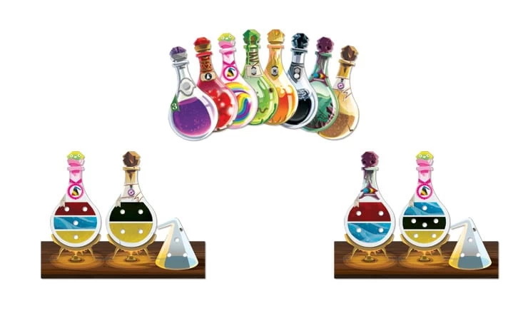 Les règles n’ont pas changé d’un poil : prenez les Ingrédients du Distributeur du Laboratoire pour terminer vos Potions.