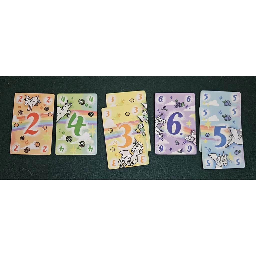 Rainbow est un jeu de gestion de main rapide et de défausse dans lequel les joueurs jouent des cartes seules, des sets ou des séries pour gagner des points sur les cartes au centre de la table.