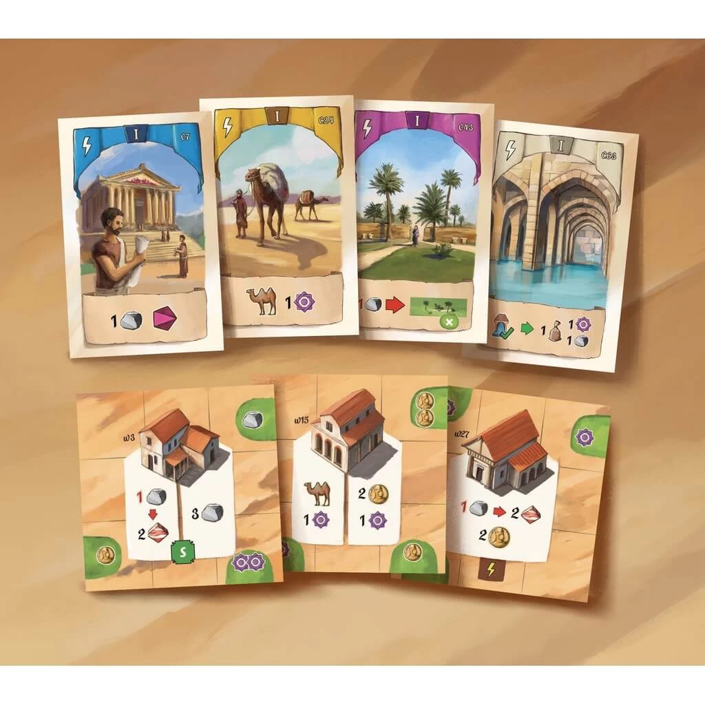 Dans le jeu, les joueurs incarnent des marchands qui effectuent des voyages d’affaires pour acheter et vendre des marchandises dans les différentes villes de la région. Resafa ne disposait d’aucune source d’eau locale et dépendait donc fortement de grandes citernes pour collecter l’eau de pluie du printemps et de l’hiver afin de rendre la région habitable. Les joueurs batissent donc des réservoirs et des canaux pour distribuer l’eau là où elle est nécessaire. Dans les villes, ils érigent des ateliers pour favoriser le développement de leurs entreprises, ce qui leur permet de collecter des ressources et des chameaux. Ils construisent également des jardins entre les entreprises, ce qui génère davantage de ressources et de points de victoire.