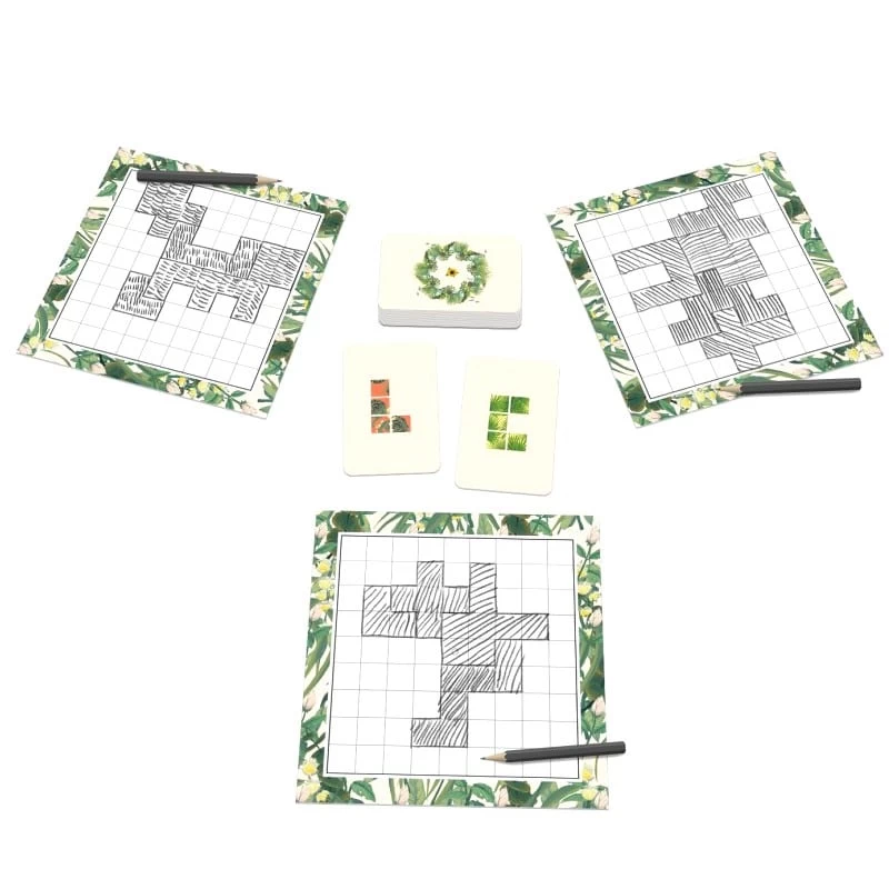 Sur base d’un deck commun, chaque joueur va devoir optimiser le placement de ses formes afin de remplir au mieux sa grille.