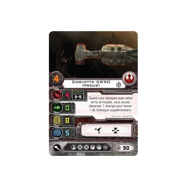 Le CR90 apporte une puissante plate-forme d’attaque à la flotte rebelle, avec de célèbres officiers, comme Leia Organa et Raymus Antilles.