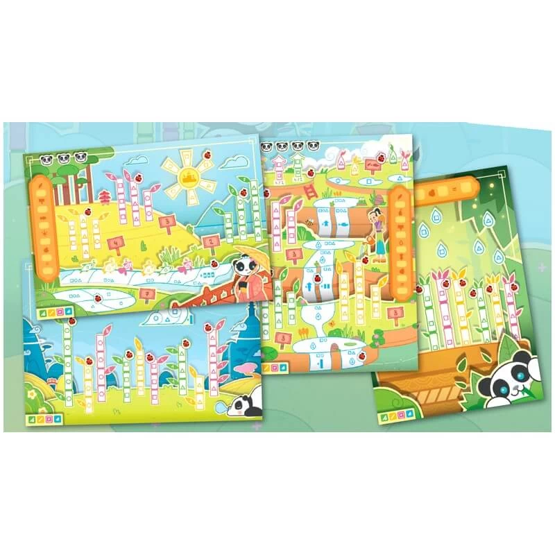 À chaque tour, un joueur lance quatre crayons – vert, jaune, rose et bleu – puis en choisit un. Les autres joueurs choisissent à leur tour l’un des crayons restants, puis tous les joueurs colorient simultanément sur leur feuille, une section de bambou correspondant à la même couleur et au même symbole que l’anneau de crayon qu’ils ont choisi : cercle, carré ou triangle.
