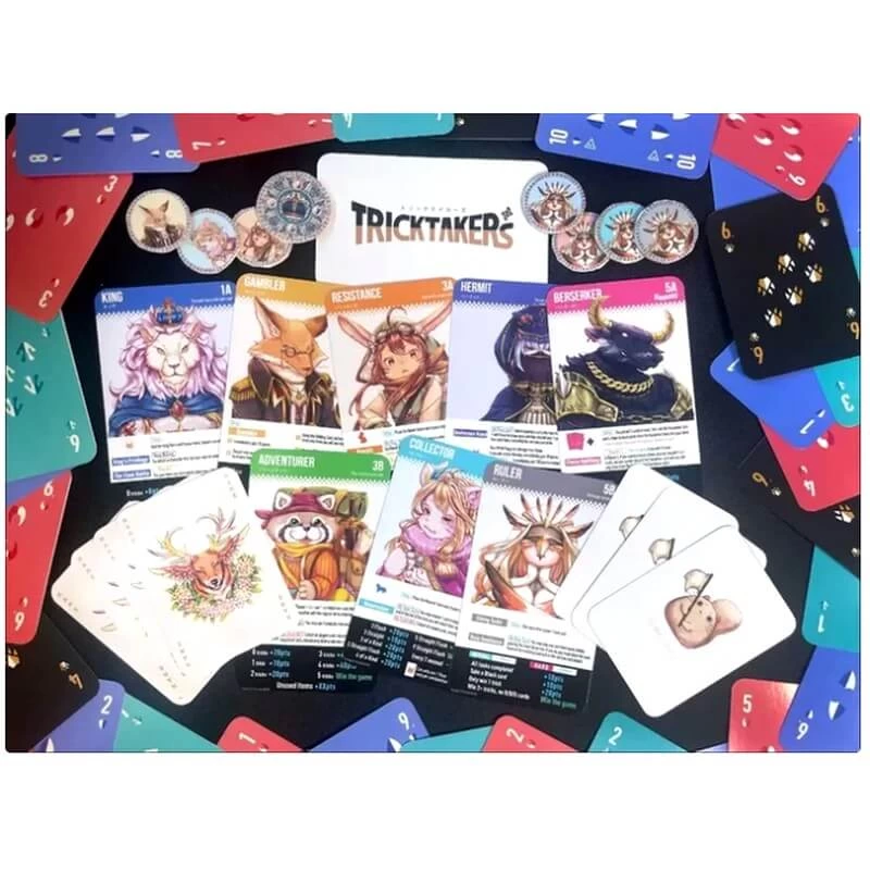 Sorti en 2021 au Tokyo Game Market au Japon, TRICKTAKERs a été surnommé « Root le jeu de cartes » par de nombreux critiques, joueurs et créateurs de contenu de l’industrie des jeux de société.