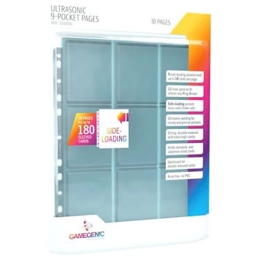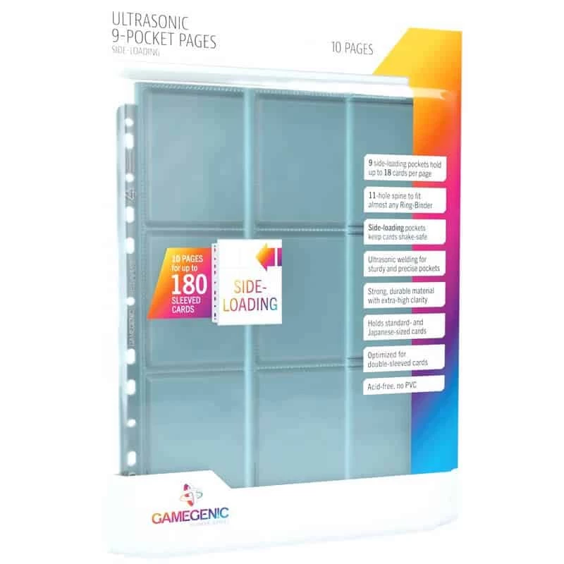 Ces pages comportent 9 pochettes à chargement par le coté qui protègent parfaitement les cartes, même sous double pochettes.