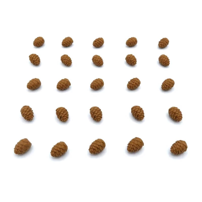 Le Set d’Upgrades – Cascadia se composent de 25 pommes de pin pour une immersion plus complète dans le jeu éponyme. Comme les vraies, elles peuvent être posées à l’horizontale ou à la verticale.