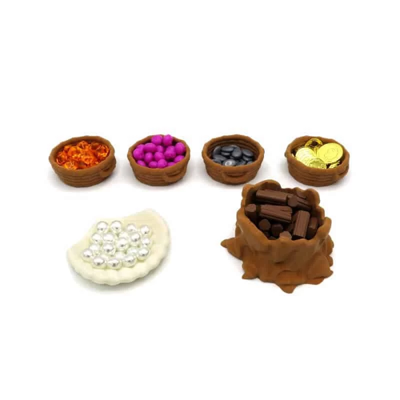 Les contenants de ressources et les porte-cartes du Set d’Upgrades – Everdell permettront de ranger l’espace de jeu et de faciliter la lisibilité des cartes événements durant vos parties.