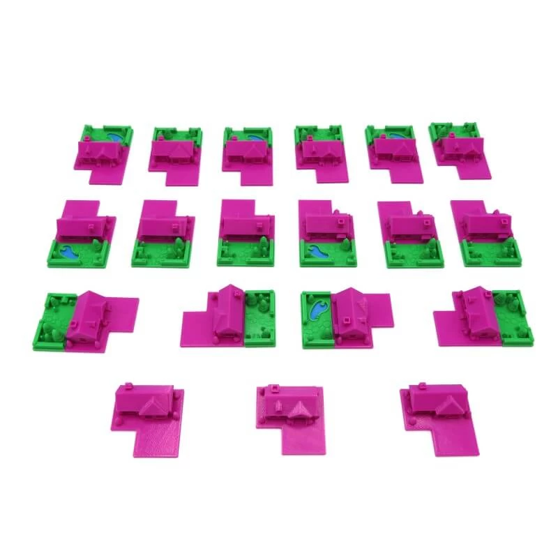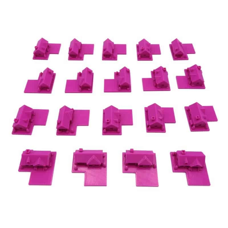 - 19 maisons (Dimensions: 3.5 x 3.5 x 1.7 cm),