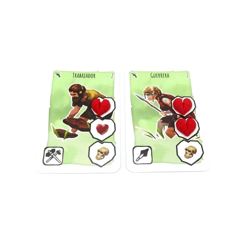 L’Upgrade Kit Paléo remplace à la fois les ressources du jeu Paléo, mais également les points de vie et chances de survie du groupe avec ses marqueurs Crânes et Cœurs